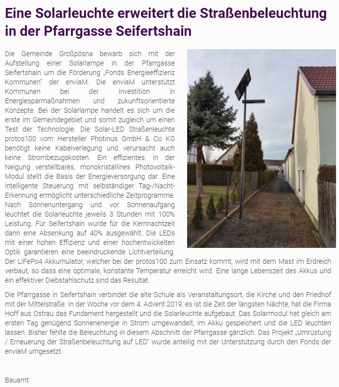 Gemeinde Ensdorf geht neue Wege - solares Straßenlicht