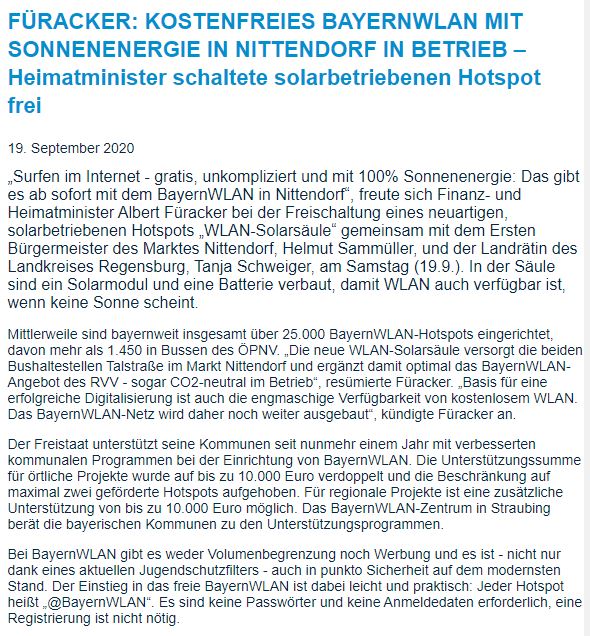 WLAN Tower mit Sonnenenergie in Nittendorf